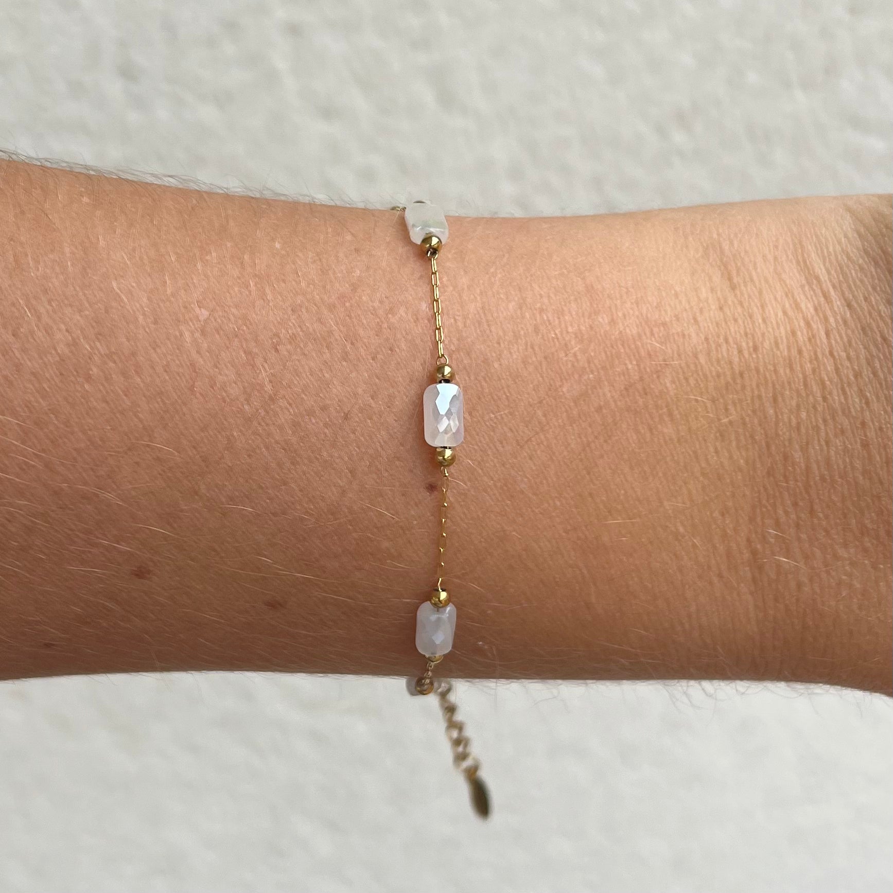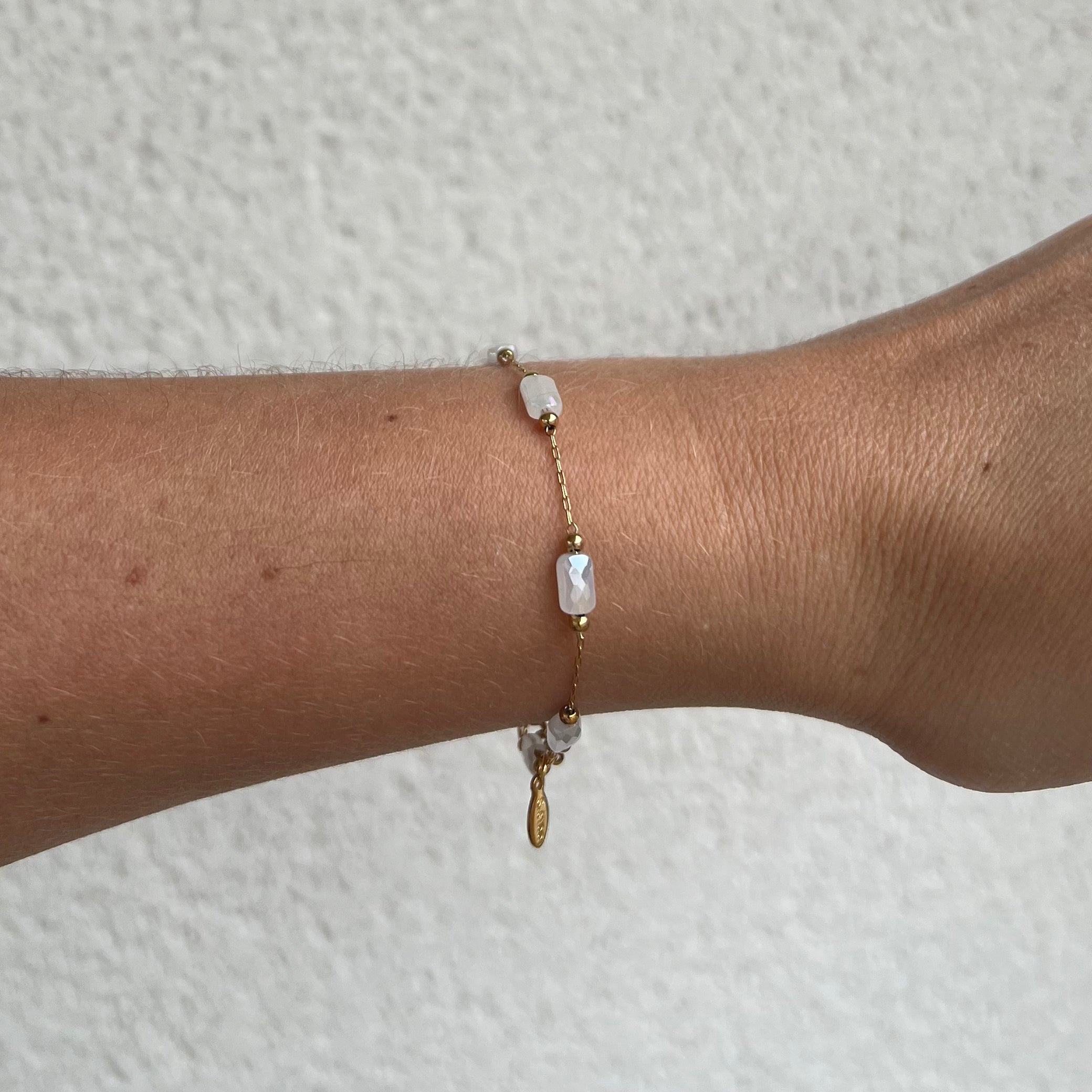 Bracelet Pierre Blanche Acier Inoxydable Ajustable