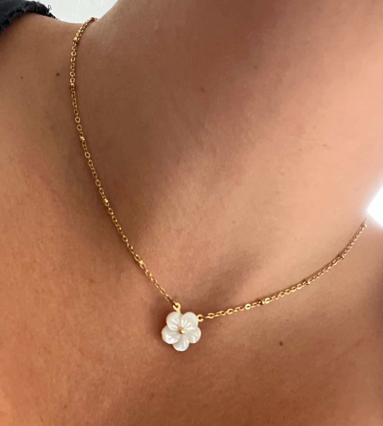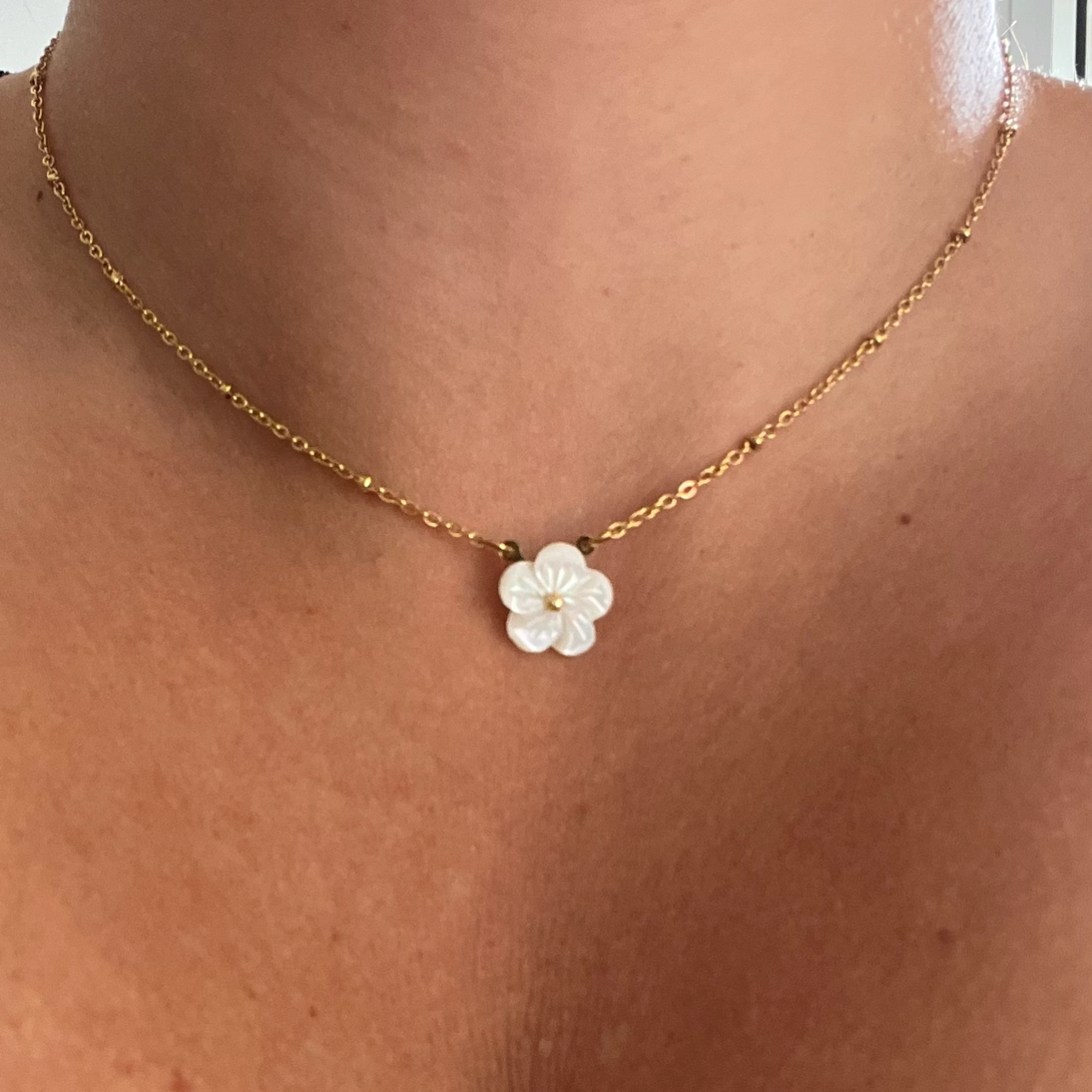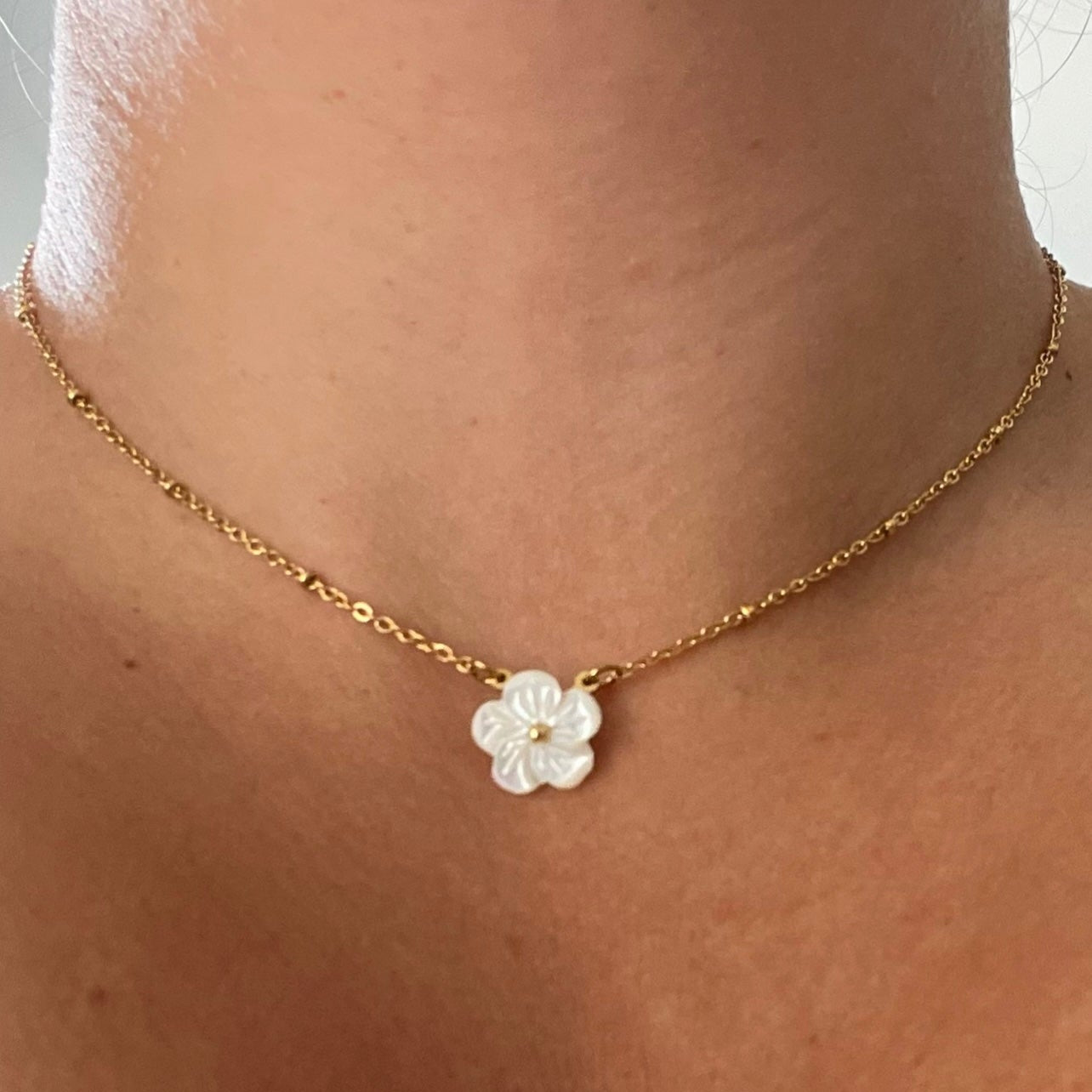 Collier Acier Inoxydable Ajustable Fleur blanche